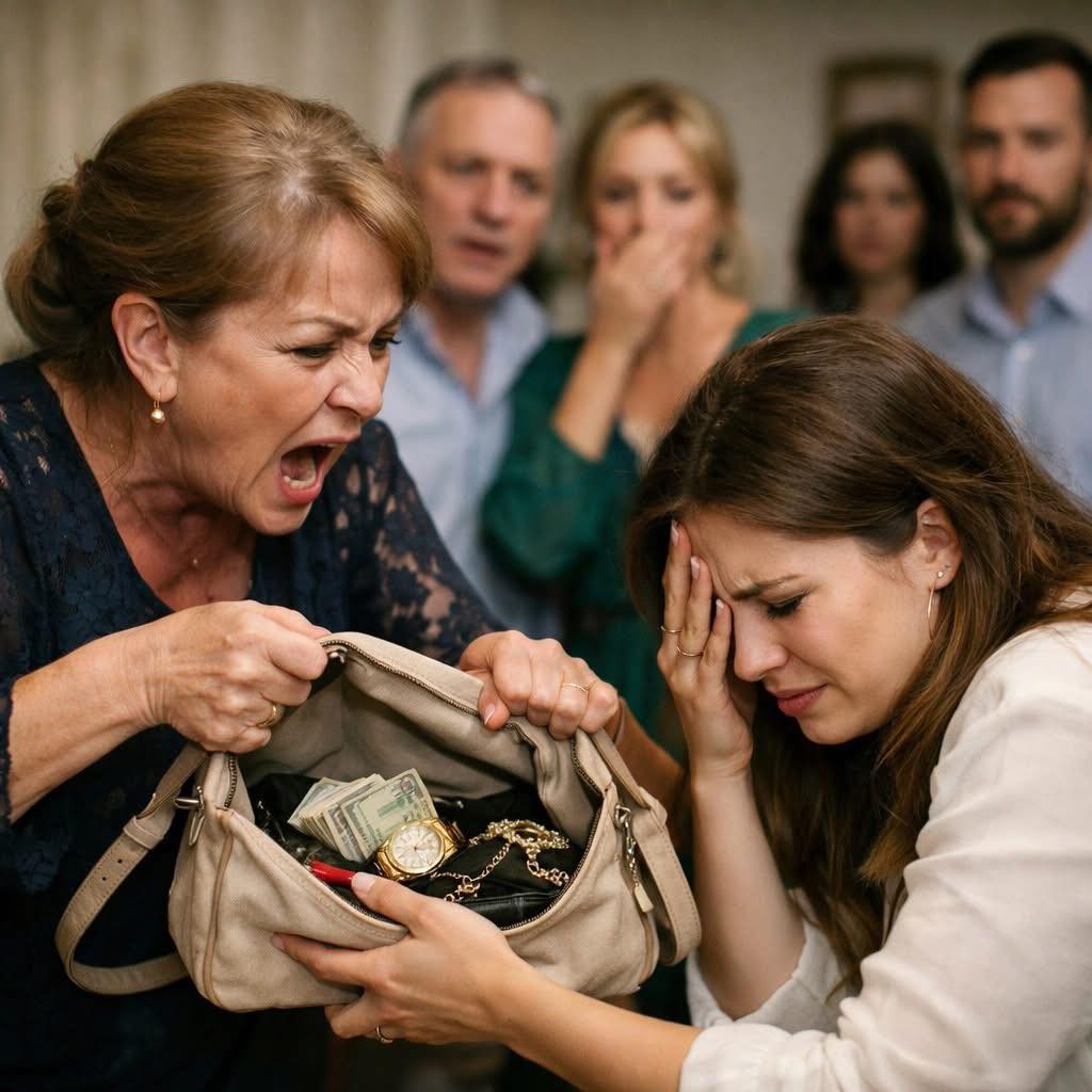 Моя сумка, вывернутая на стол. Её украшения на скатерти. Смех гостей, который ещё полчаса назад звенел вокруг. И она — моя свекровь — уверенная, что сейчас меня раздавят окончательно.